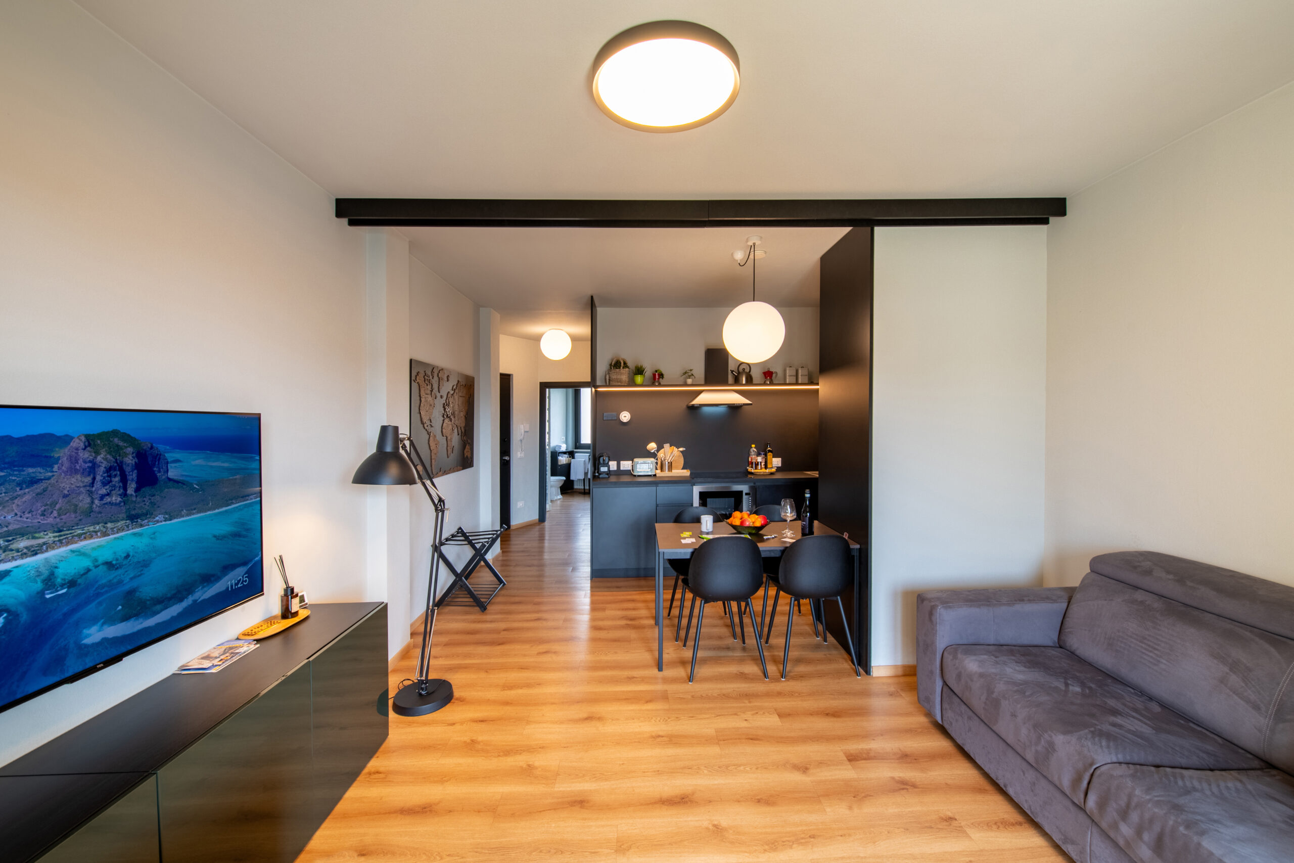 C'erano frutta fresca e prosecco come omaggio. L'appartamento era pulitissimo e dotato di tutto ciò di cui si possa avere bisogno. Anche il parcheggio privato sotterraneo era perfetto.